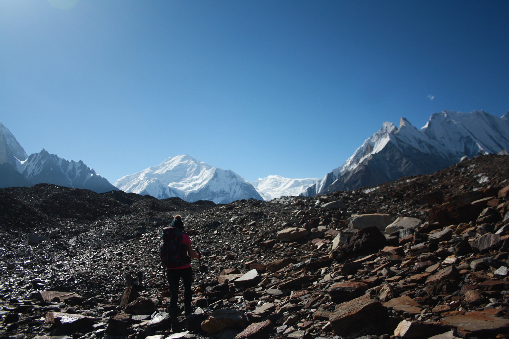 The junction of Baltoro and Godwin-Austen glaciers. Surrounded by K2, Broad Peak, and the Gasherbrums.